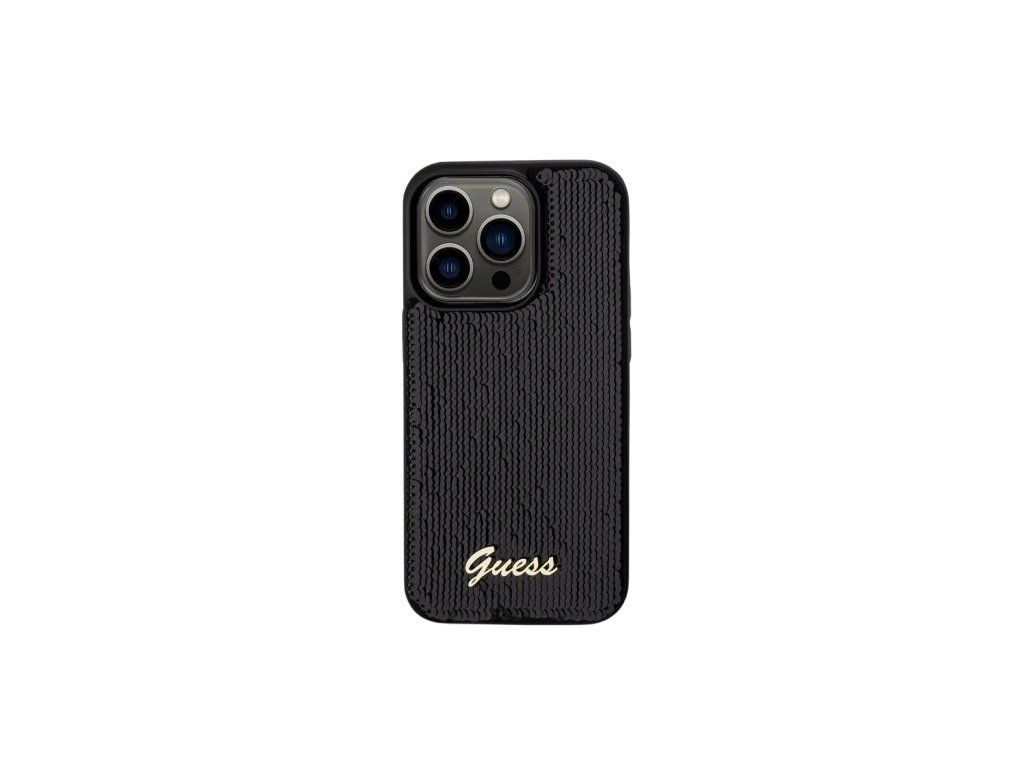 Guess Sequin Script Logo kryt pro iPhone 14 Pro Černá